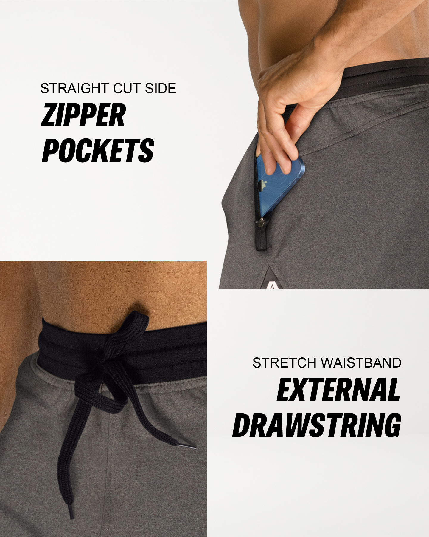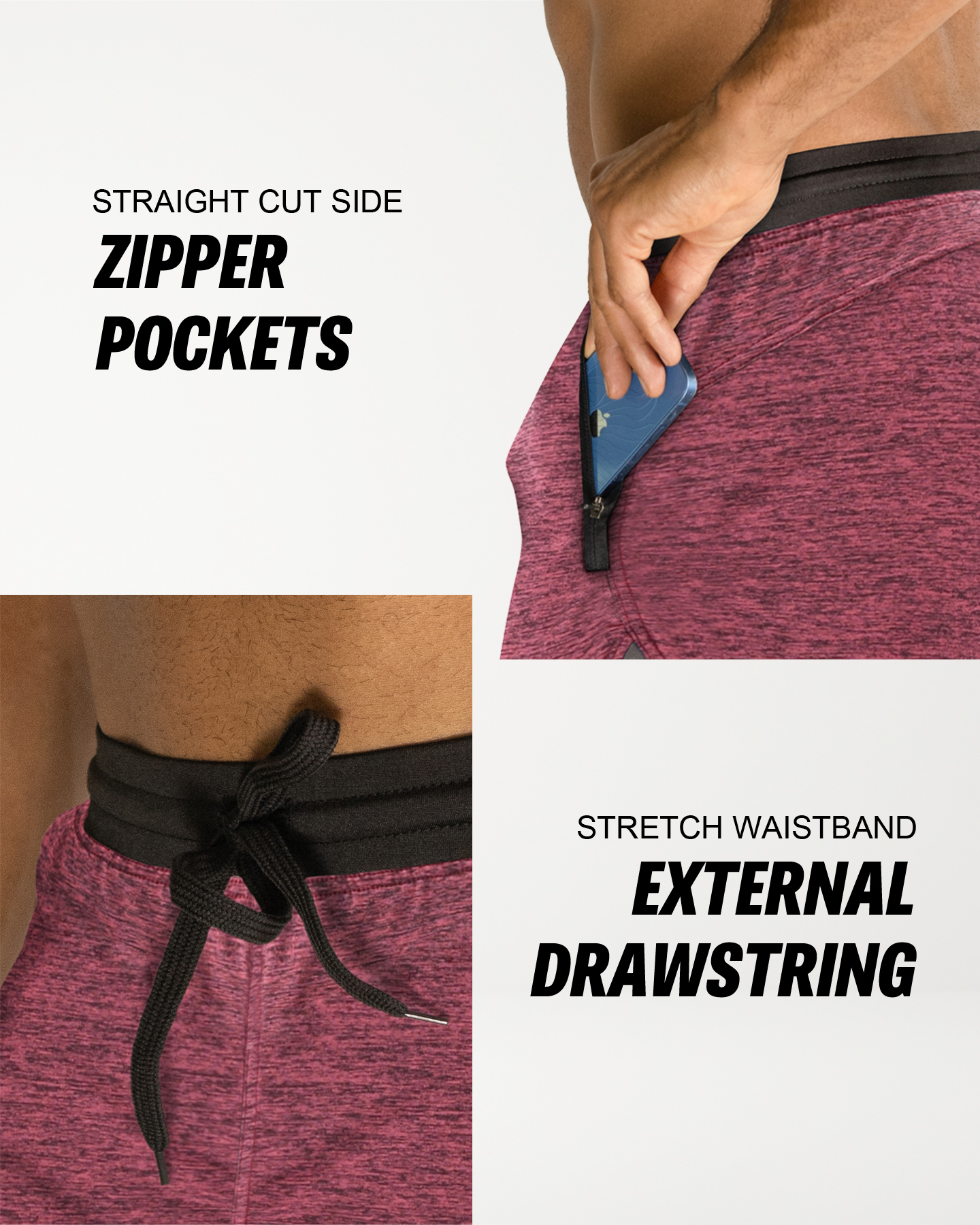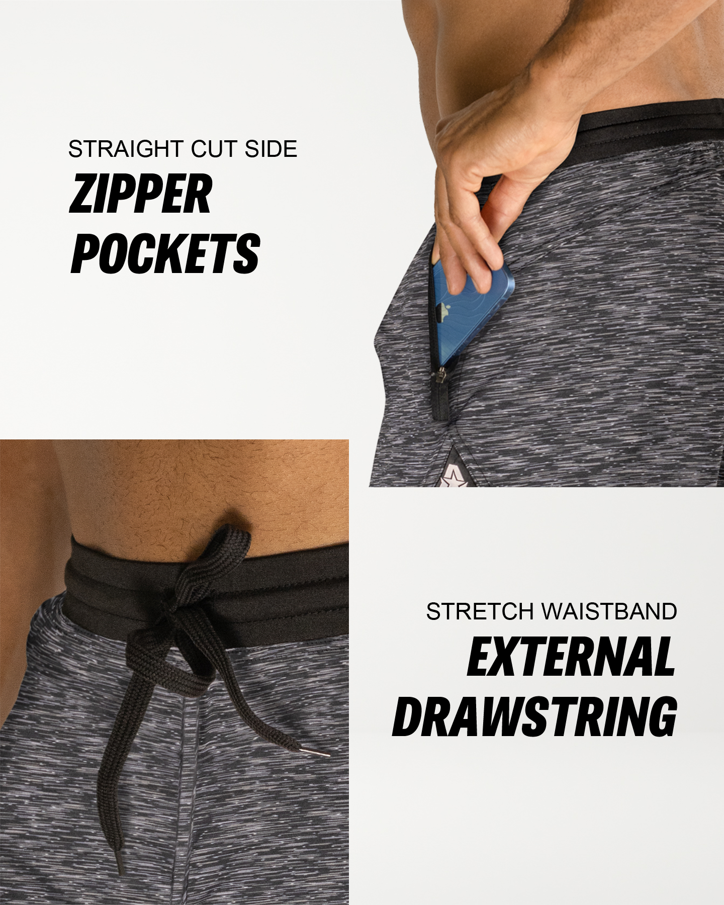 • KEY FEATURES. Zippered front pockets designed for cross-training and functional workouts. Handcrafted from a strong/soft/stretch-performance fabric and high-impact flatlock stitching. Optimized for cross-training, fitness, functional training, yoga and gym workouts. Typically falls 1-2" above the knee (7" Inseam). Modern, athletic fit. American sizing. Designed in the USA. Buy with confidence.