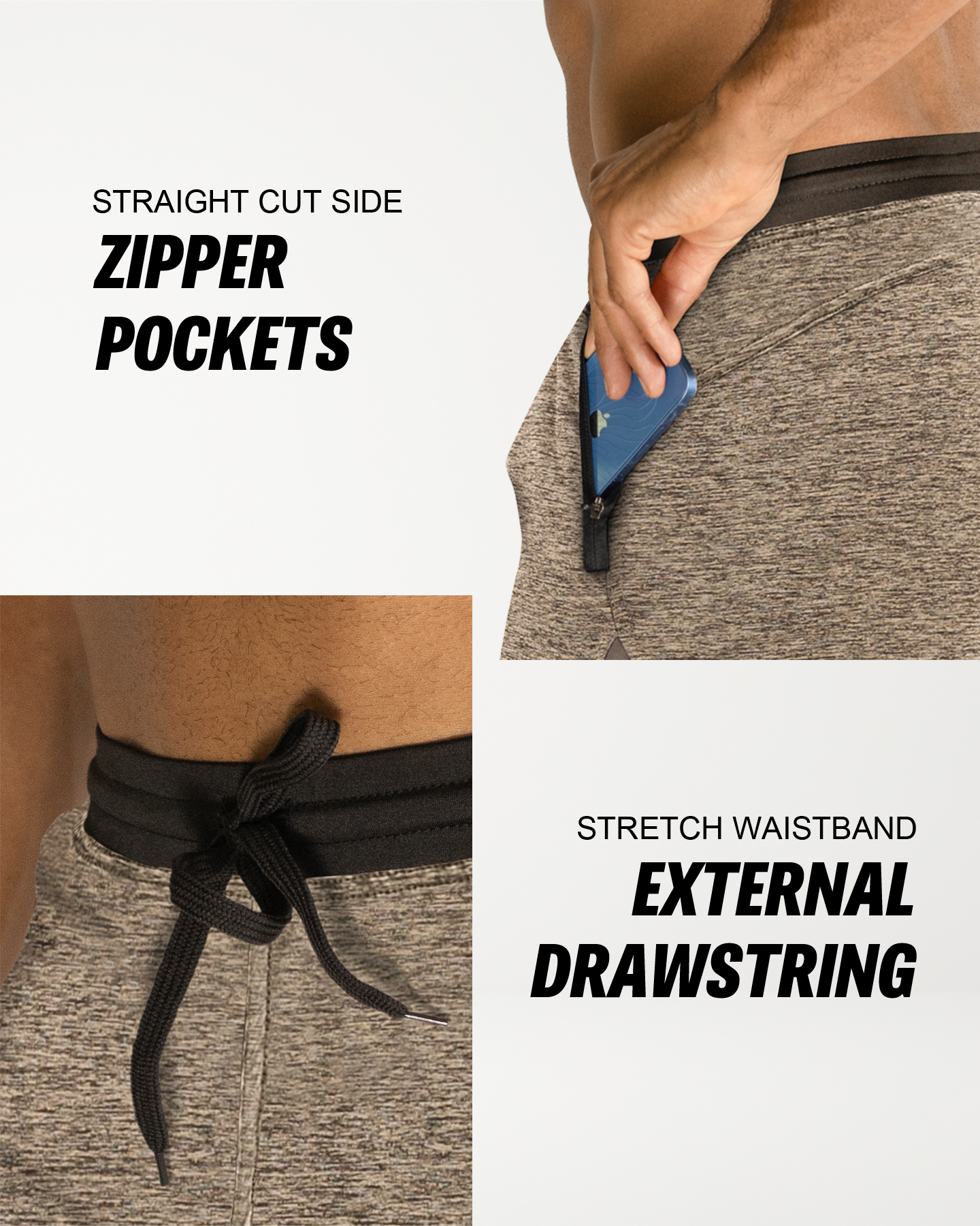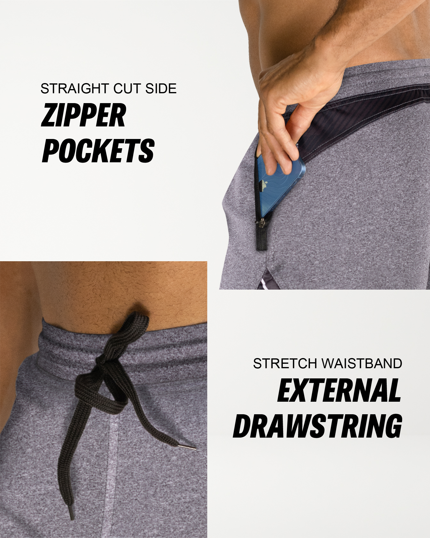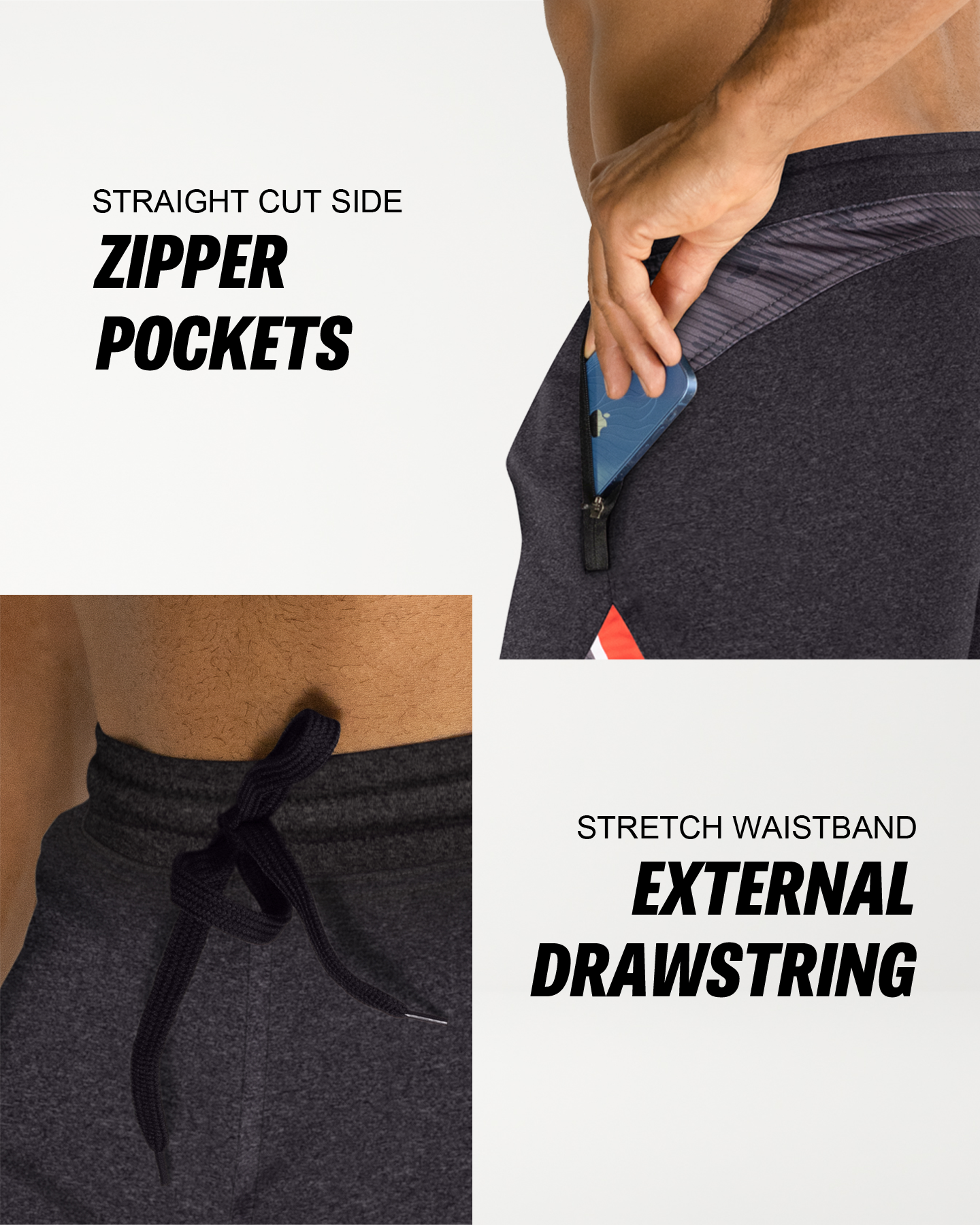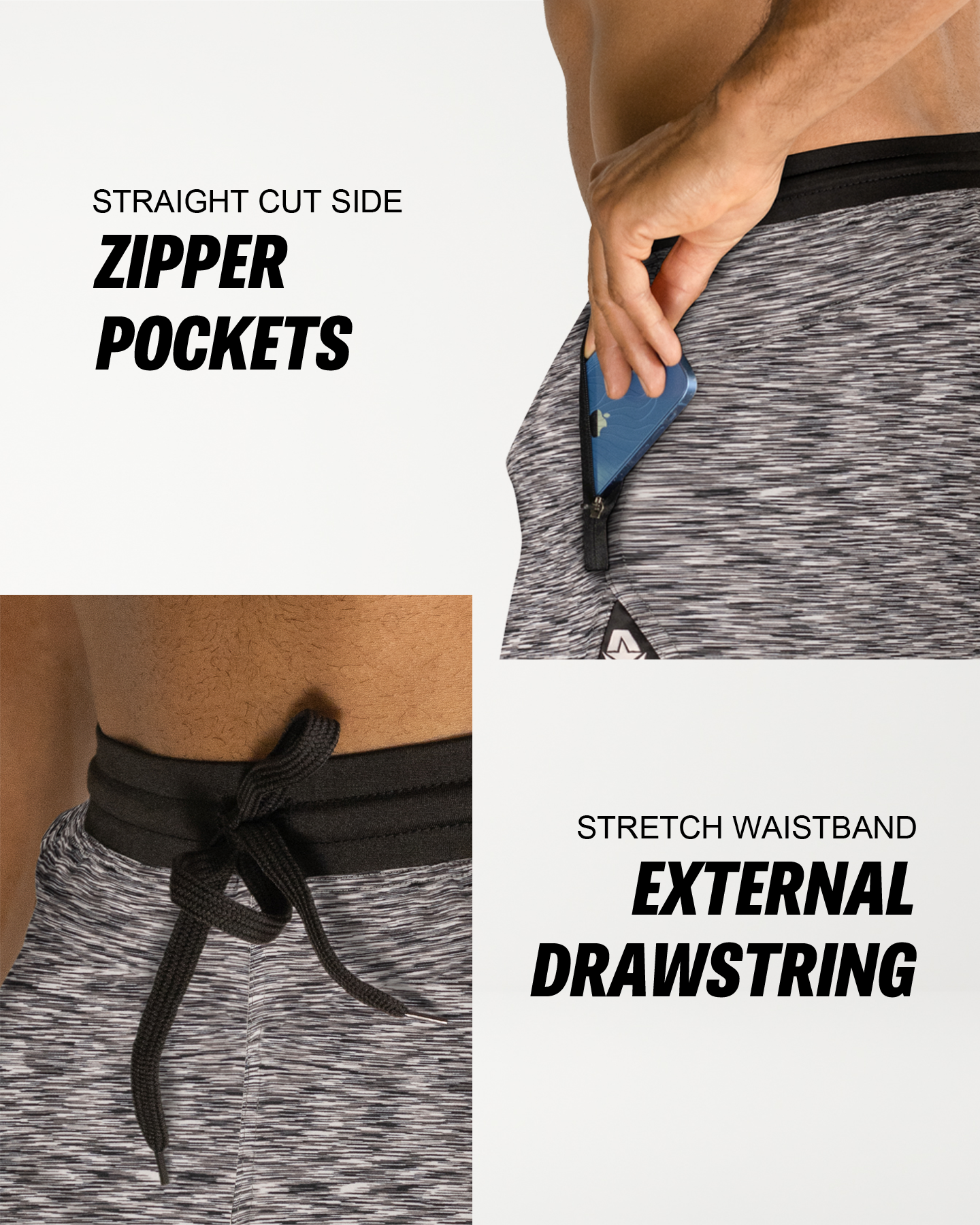 • KEY FEATURES. Zippered front pockets designed for cross-training and functional workouts. Handcrafted from a strong/soft/stretch-performance fabric and high-impact flatlock stitching. Optimized for cross-training, fitness, functional training, yoga and gym workouts. Typically falls 1-2" above the knee (7" Inseam). Modern, athletic fit. American sizing. Designed in the USA. Buy with confidence.