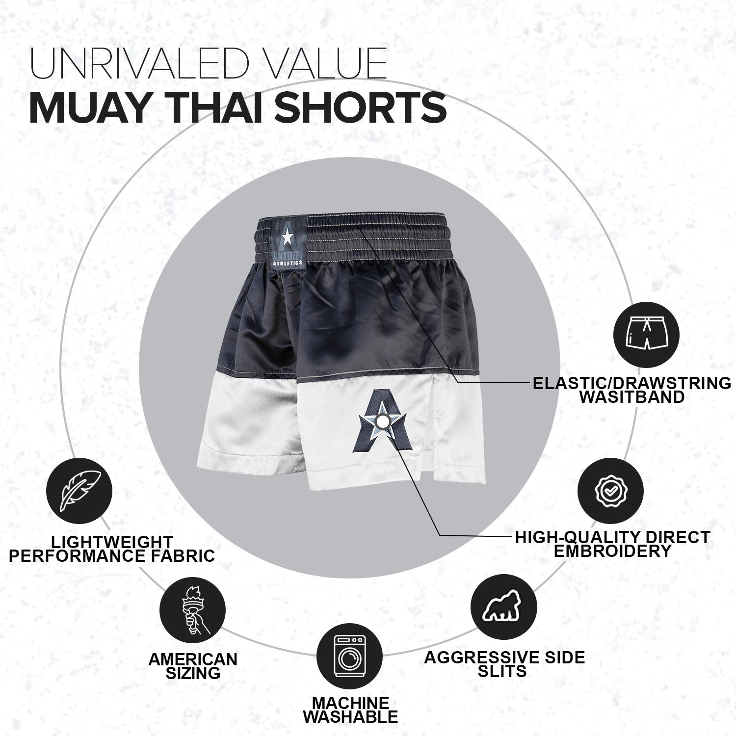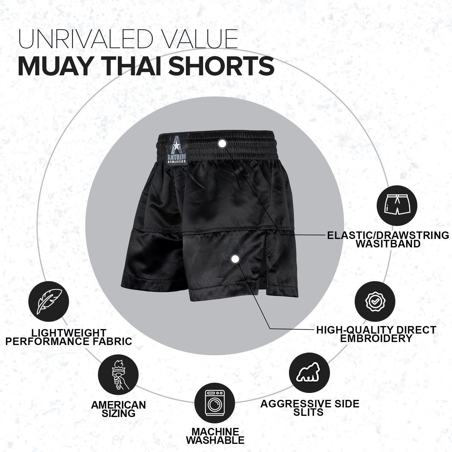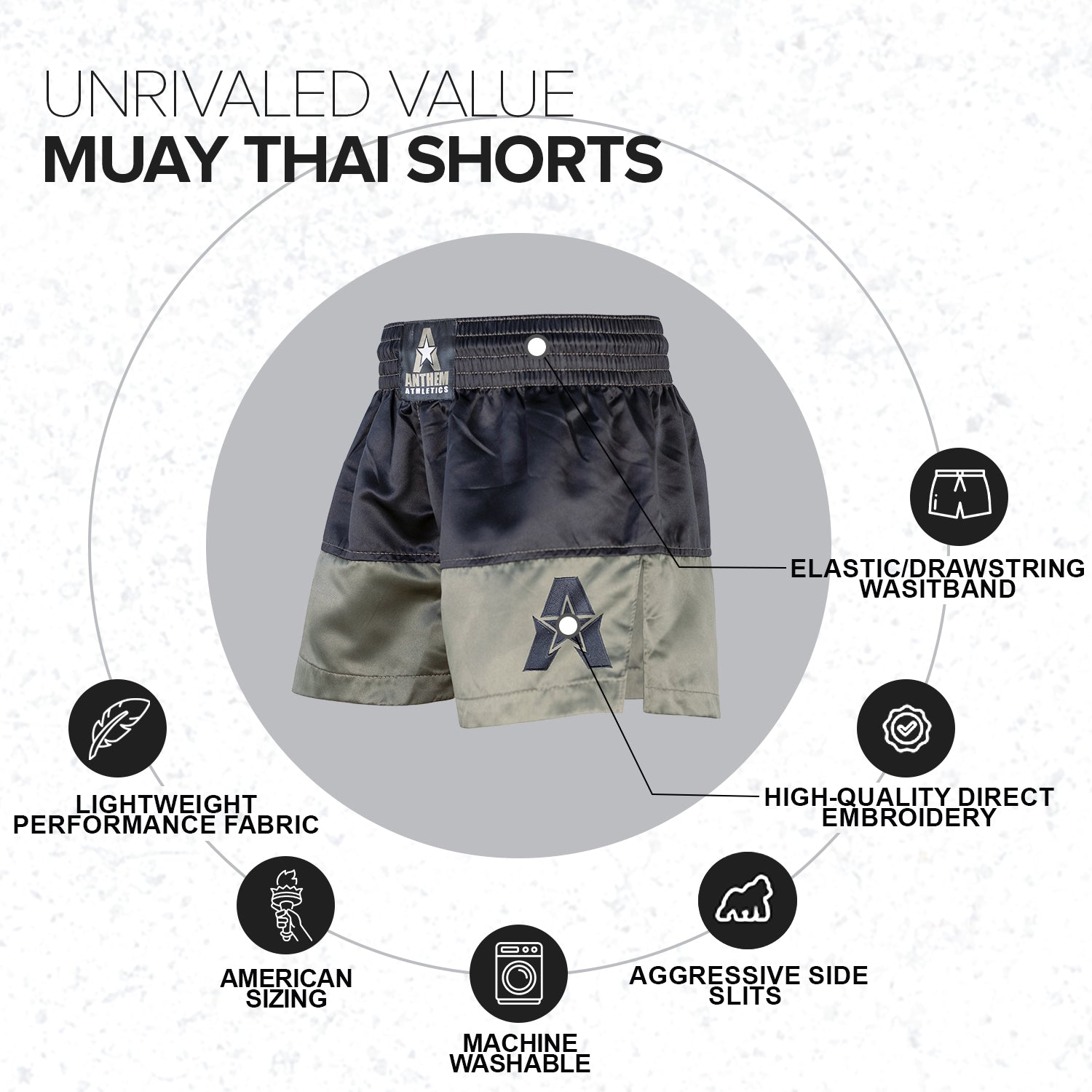 OPTIMIZED FOR: Muay Thai, kickboxing and boxing (short, retro cut). Want to use as a team uniform? No problem. Complies with all boxing and Muay Thai competition requirements (select colors). Adult, men, women, youth, boy and big guy sizes available. Colors include red, blue, white, black, army, olive drab, grey, etc. Contact us for team pricing.