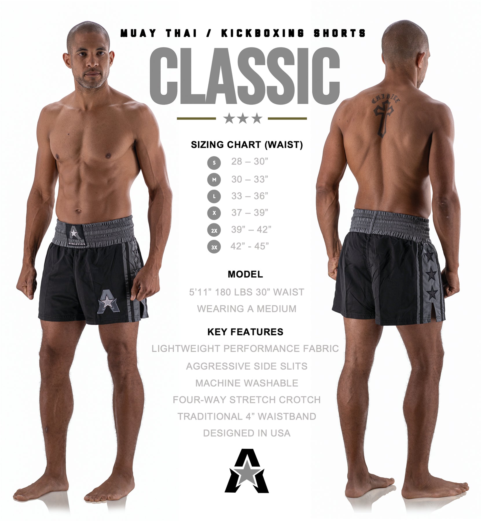 • INSTANT CLASSIC. We built a reputation for making the best performing and fitting Muay Thai shorts on the market. We pioneered fully machine-washable shorts, an American sizing chart that works for a full range of body-types and a clean, performance-driven aesthetic. These shorts are everything fighters love about our Infinity, Resolute, 50/50 Shorts and more. With over 90% positive rating, over 90% “fits true to size” and thousands of happy fighters, you’ll be glad you made the choice.