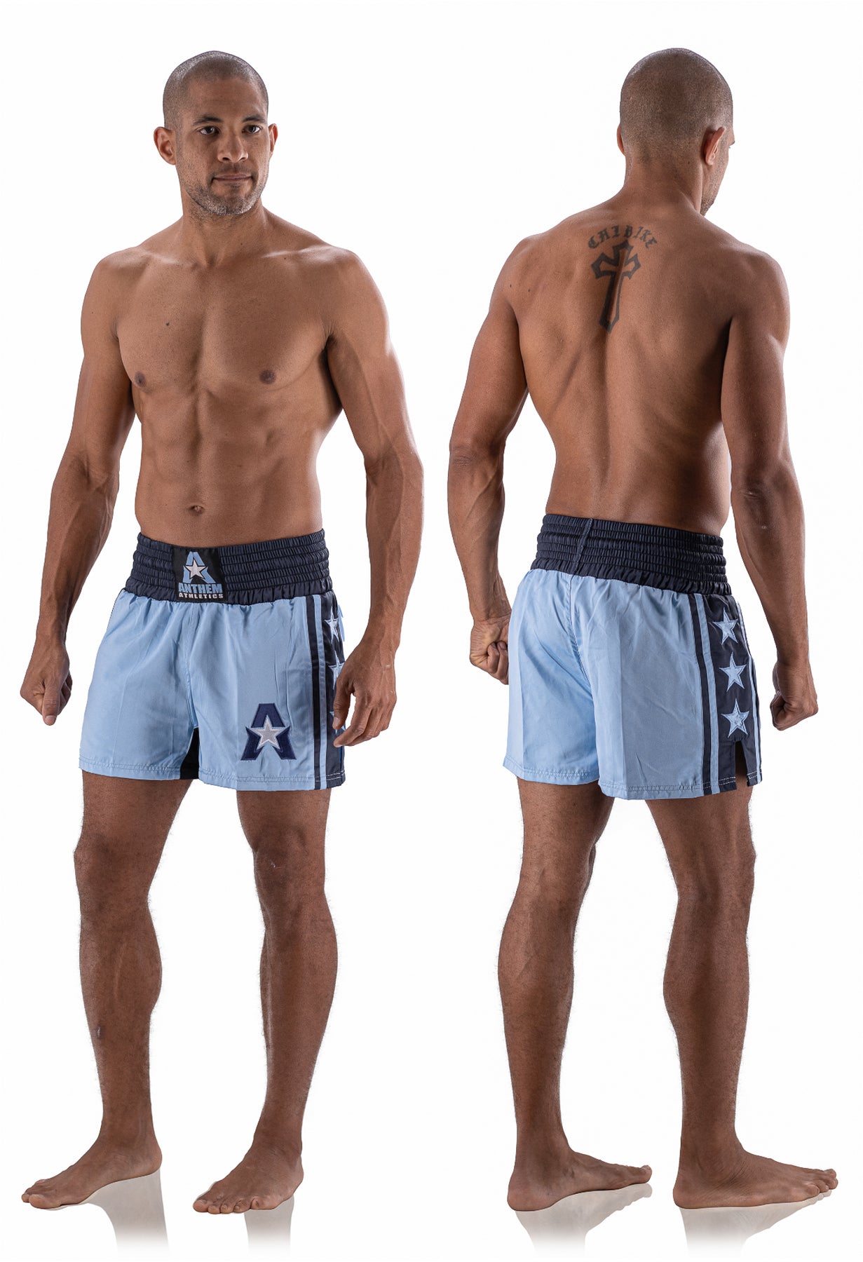 • OPTIMIZED FOR. Muay Thai, kickboxing and boxing (short, retro cut). Want to use as a team uniform? No problem. Complies with all boxing and Muay Thai competition requirements (select colors). Adult, men, women, youth, boy and big guy sizes available. Colors include red, blue, white, black, army, olive drab, grey, etc. Contact us for team pricing.