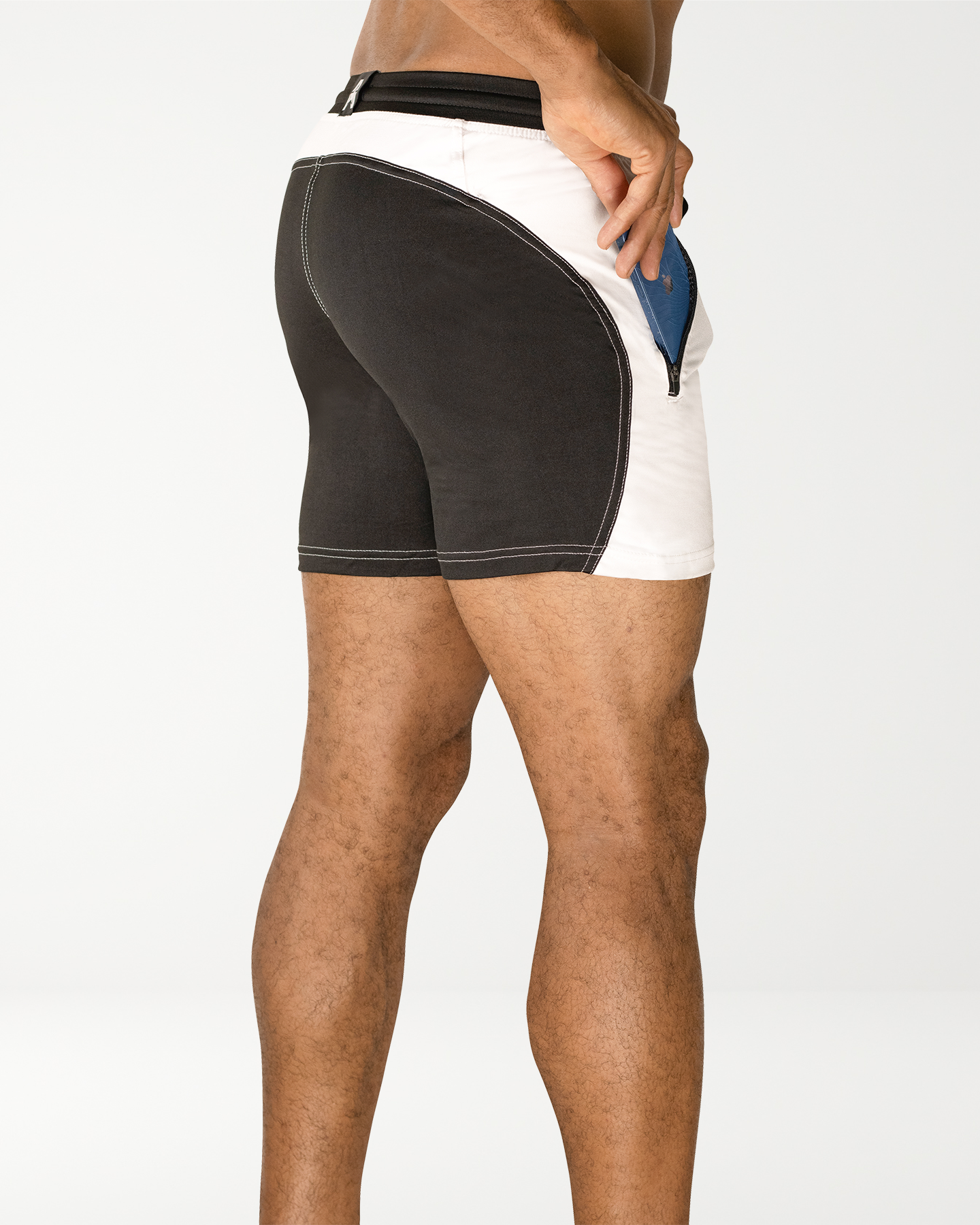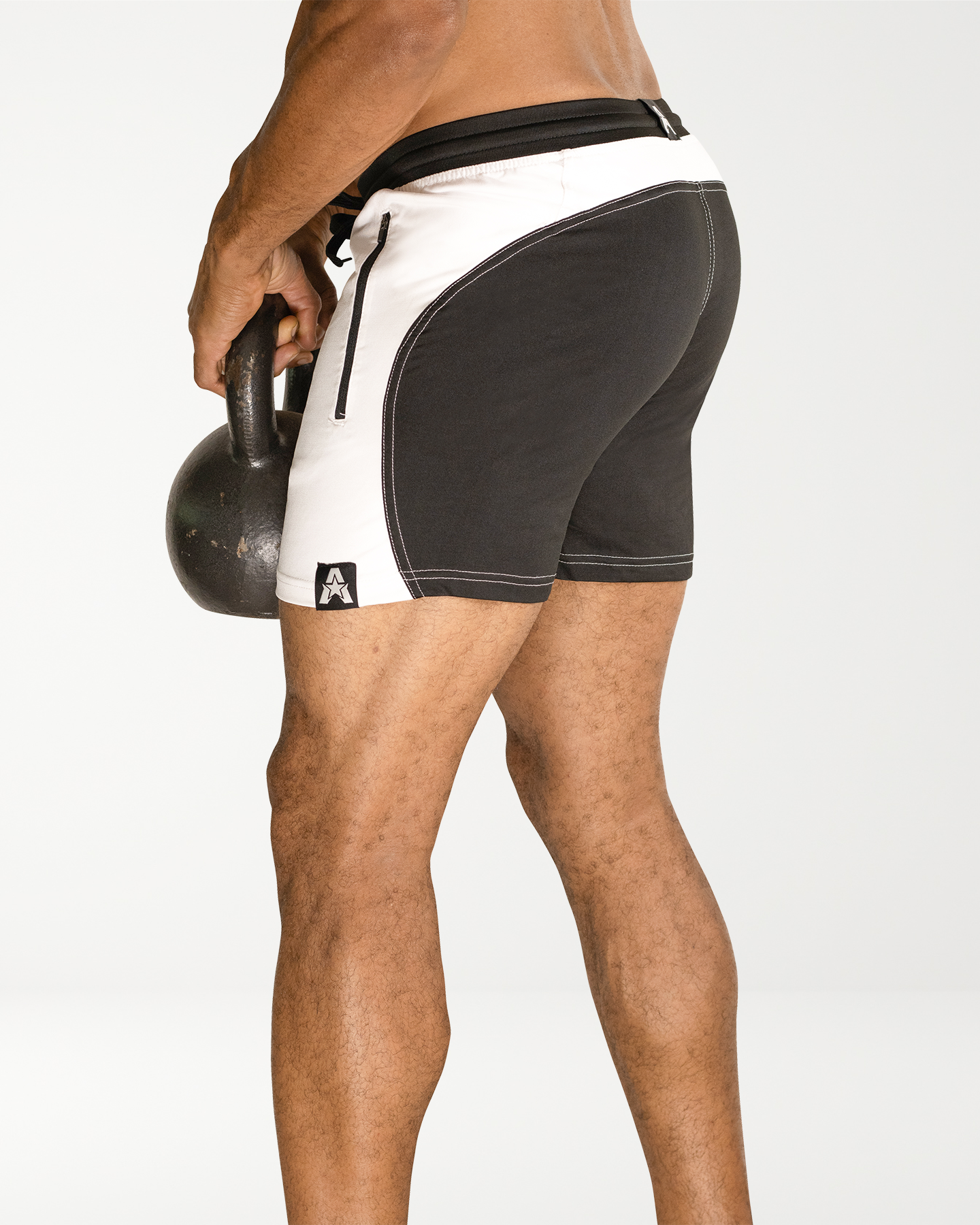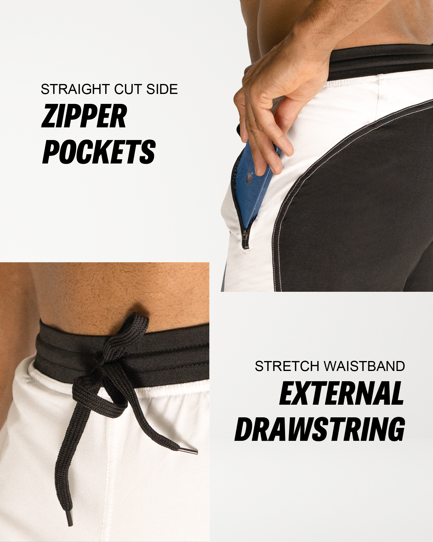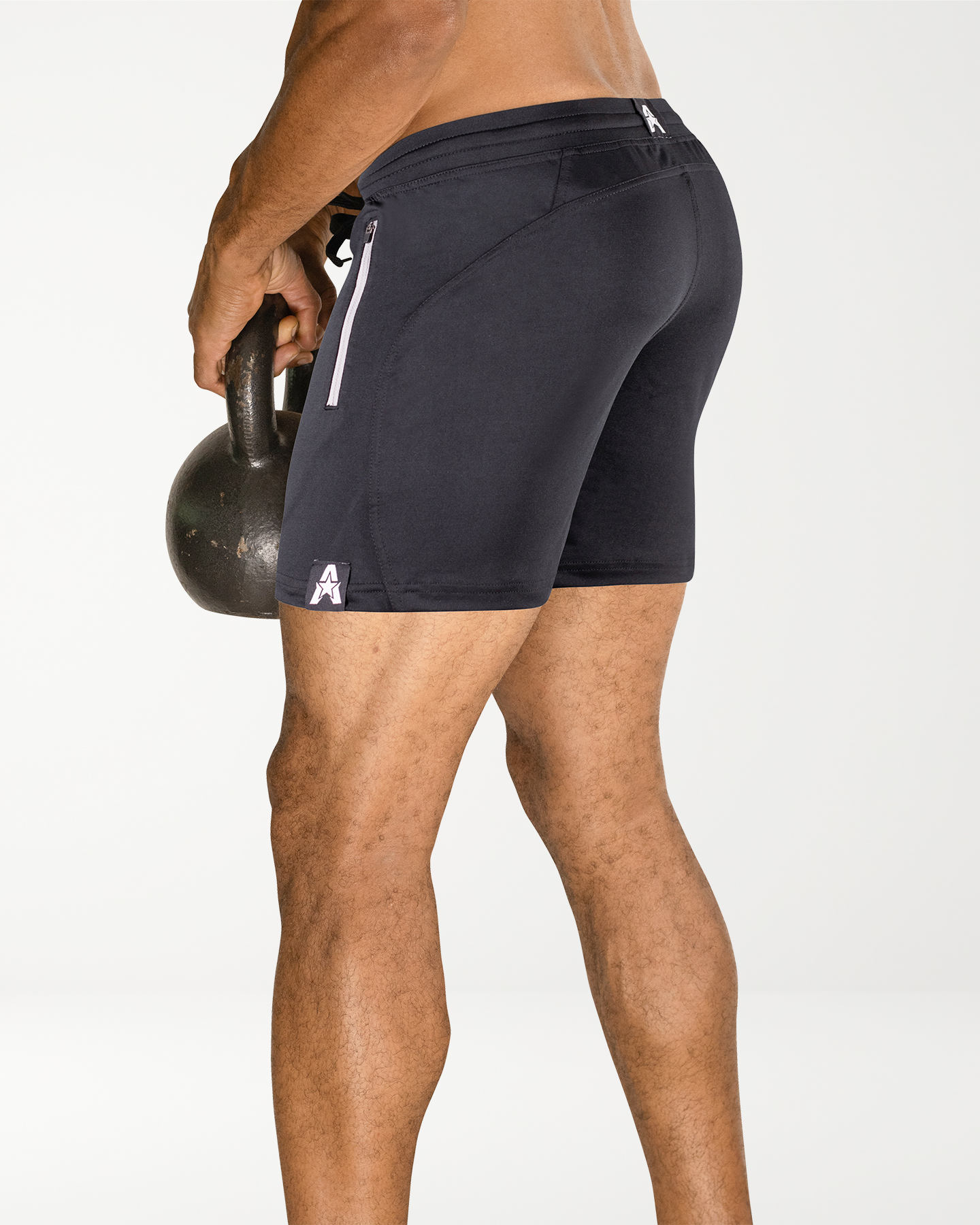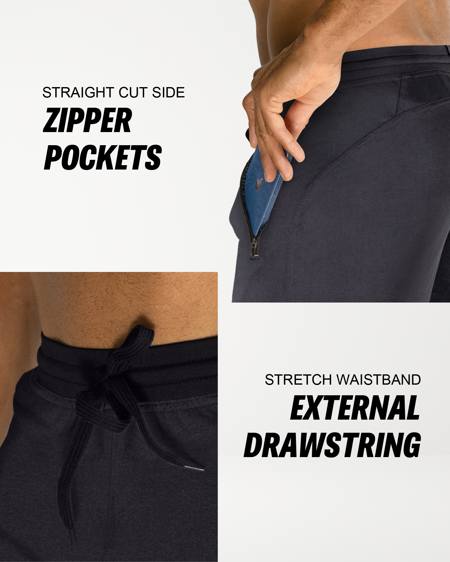 KEY FEATURES. Handcrafted from a strong/soft/stretch-performance fabric and high-impact flatlock stitching. Vertical zippered side pockets keep items secure. Fully functional drawstring. Optimized for bodybuilding, lifting, aesthetic and gym workouts. Note: 5” inseam typically falls 4-5" above the knee. American sizing. Designed in the USA. Buy with confidence.